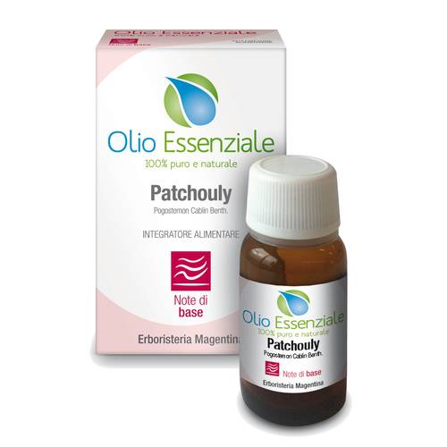 Olio essenziale naturale di Patchouly. Profumo intenso, aroma dolce e speziato. Senza OGM.